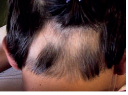 Trichotillomania is a traction related form of alopecia. Trichotillomania is the name given to the habitual and compulsive plucking of hair from the scalp and/or other hair-bearing areas of the body. Long-term trichotillomania can result in permanent irrevocable damage. It remains unknown whether trichotillomania should be classified as a habit or as obsessive-compulsive behavior. In its mildest form, trichotillomania is a habitual plucking of hair while a person reads or watches television. In its more severe forms, trichotillomaniahas a ritualistic pattern and the hair-plucking may be conducted in front of a mirror. The person with trichotillomania often has guilt feelings about his or her “odd” behavior and will attempt to conceal it. Hair loss due to trichotillomaniais typically patchy, as compulsive hair pullers tend to concentrate the pulling in selected areas. Hair loss in this case cannot be treated effectively until the psychological or emotional reasons for trichotillomaniahave been addressed effectively.