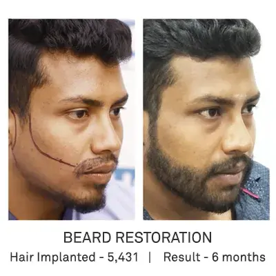 Beard Transplant & Restoration Case,6 months results, 5431 hair implanted, Session Duration 5 hours. Watch the video to know more.
