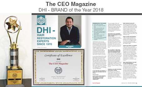 We take pride in sharing that DHI International has been awarded The Brand of the Year 2018 under the Hair Restoration category. DHI Medical Group is the world’s largest chain of hair transplant and restoration clinics, with a global presence across 74 clinics in 42 countries.