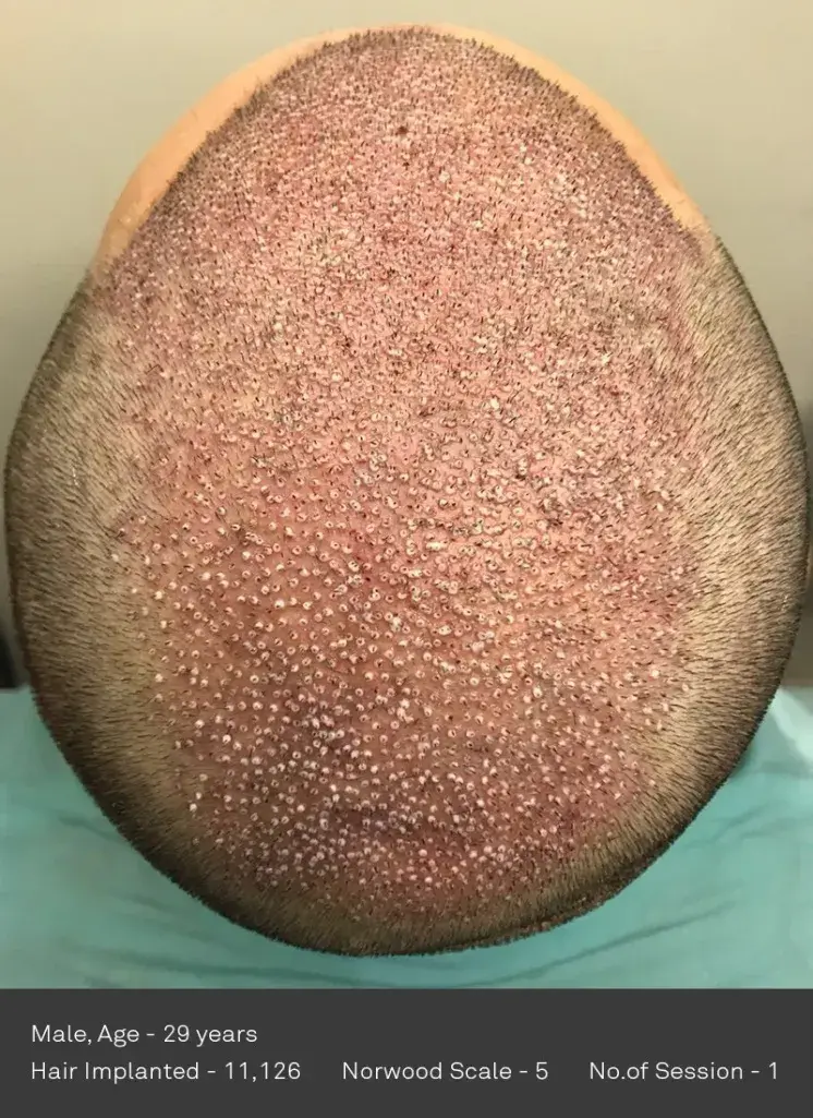 The medical team of DHI International has set a new world record by implanting a whopping number of 11,126 hair follicles in a single session! This world record breaking session was performed in November 2017 on a 29-year old male patient suffering from Norwood Scale 5 hair loss. Total 5,291 grafts were implanted.