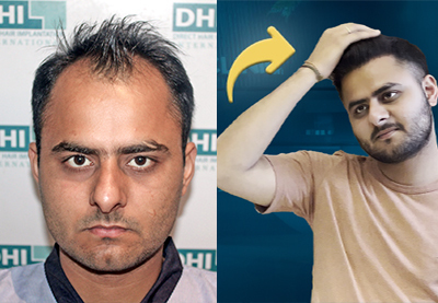 er hair transplants, which usually takes five to nine months to demonstrate noticeable benefits. In addition to improving implanted hair life, following post-procedure guidelines allows the hair to blend naturally. DHI India surgeons use advanced methods and patented equipment to deliver natural, painless, safe, and long-lasting results. Our sophisticated and most advanced DHITM technique makes us qualified and certified, and we can completely change a patient’s personality like we did for Rajat.