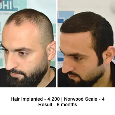 In just 8 months, highly satisfactory result can be seen and the patient is delighted with it. Implanted hairs continue to grow for up to 18 months and therefore a much better result will be visible in the next few months.