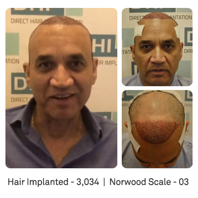 Number of hair implanted 3034, Norwood Scale – 3. Watch the video to know more.