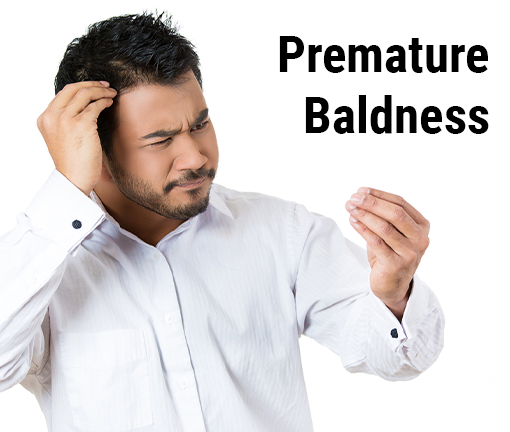In this situation, hair loss starts when an individual is too young, and the severity of hair loss keeps increasing until they go bald. In most men, premature baldness starts with hair thinning in different portions of the head and takes a severe form eventually.